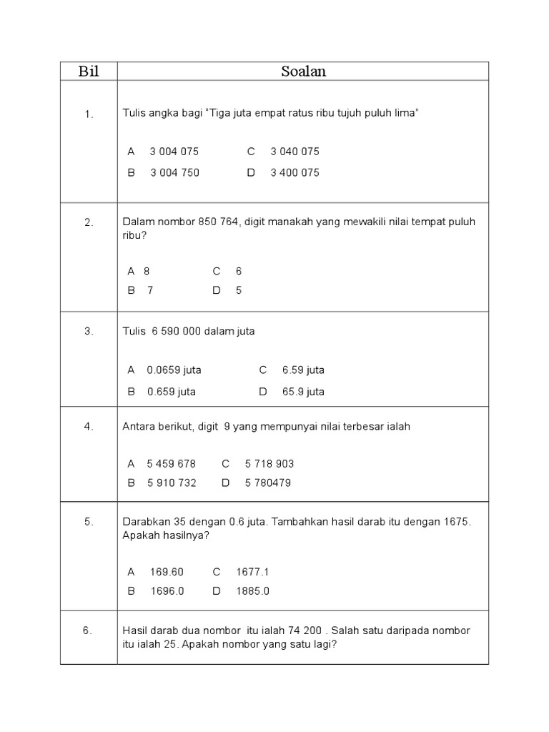 Soalan Matematik Mengikut Aras Sintesis Arasbloge